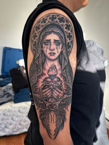 Stephi Lee specializes in dark, high-contrast black and grey tattoos— blending realism, surrealism, and blackwork into bold, custom pieces that feel a little haunting.